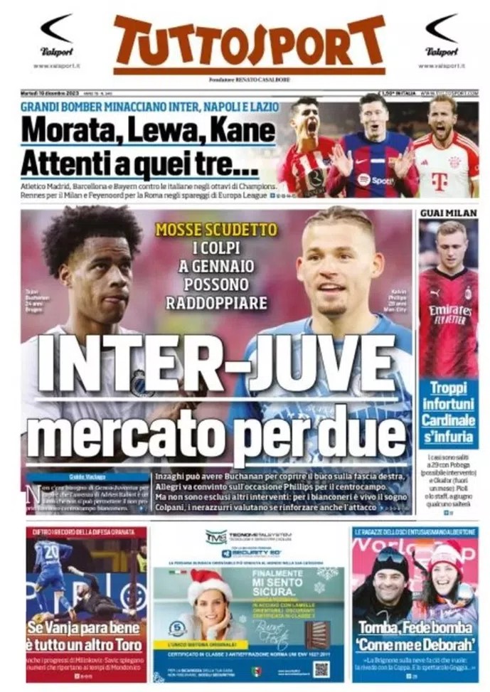 Wyścig o Scudetto trwa, czekają nas transfery w styczniu. Inzaghi może dostać Buchanana, by załatać dziurę na prawym skrzydle. Allegri musi się przekonać do Philipsa do pomocy, jednak nie wykluczone są inne ruchy, Colpani marzeniem. Inter myśli też o napastniku.