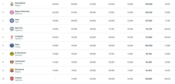 Inter zajmuje 2. miejsce w Serie A, 3. miejsce w Lidze Mistrzów i bardzo wysokie miejsce w rankingu UEFA. Jak dokładnie prezentuje się ranking?